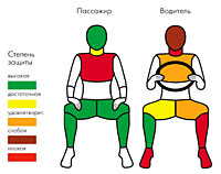 | водителя | пассажира | «зеленой» зоны | «красной» зоны | |